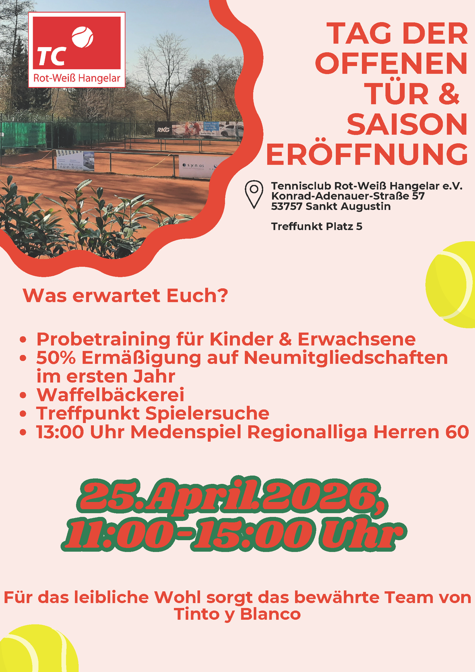 Ab dem 6.4.2026 starten wir wieder unser Clubmatch. Das ist so etwas wie eine Club-Rangliste, bei der man sich anmeldet und alle 14 Tage ein Spiel bestreitet. Man meldet sich unter ClubMatch Tennis-Liga – Interner Club-Liga an und schätzt seine Spielstärke ein. Die App lost dann Spielpartner derselben Stärke aus. Das Ergebnis wird anschließend in die App eingetragen und anhand der Ergebnisse werden für den kommenden Zeitraum neue Spielpaarungen ausgelost. So entsteht eine Rangliste und man hat alle zwei Wochen einen neuen Spielpartner. Das ist auch sehr interessant, wenn man neue Spielpartner sucht. Natürlich dürfen auch Mannschaftsspieler teilnehmen, sie sollten sich dann nur entsprechend höher einstufen. Wir hoffen auch dieses Jahr, dass viele von Euch mitmachen, damit es in allen Spielstärken viele Spiele gibt. Die Teilnahme ist für Mitglieder kostenlos.